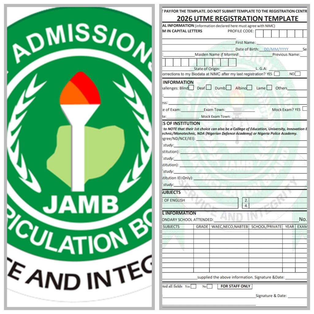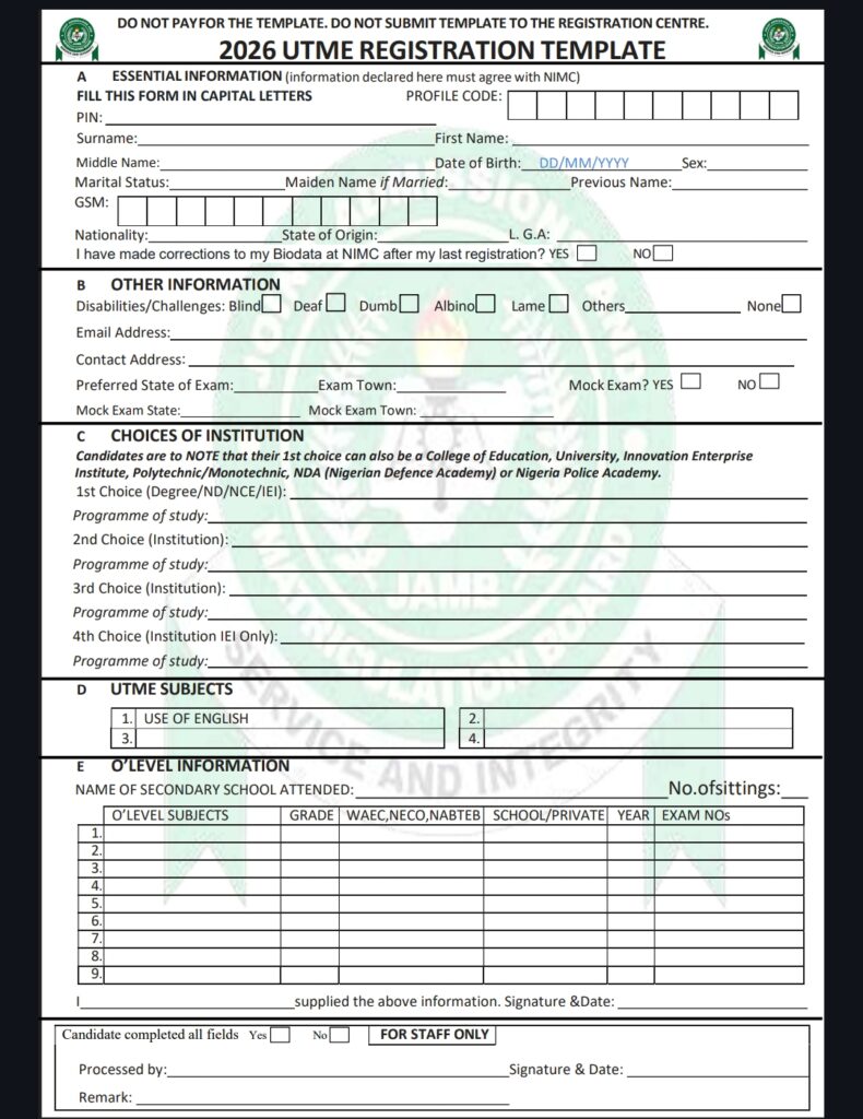 DOWNLOAD JAMB 2026 REGISTRATION TEMPLATE FORM (PDF File)
